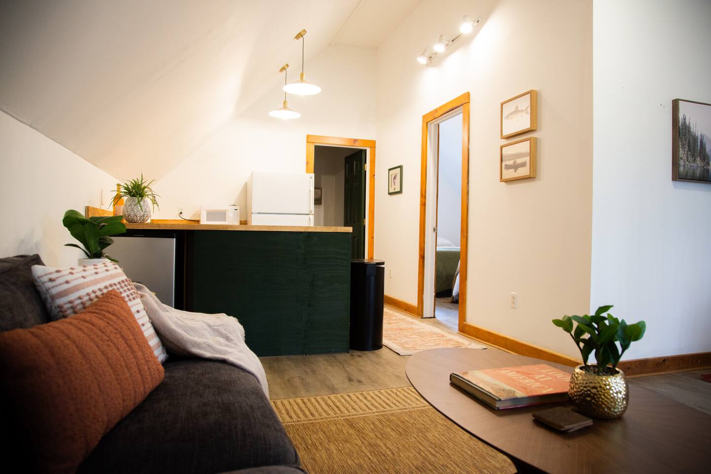 IMPORTANT NOTE ABOUT THE WINTER WEATHER: These are cabins, and during cold weather—especially when outdoor temperatures drop below 20°F—the cabins can become quite cold. Due to limited insulation under the floors, floors may feel cold even around 32°F. We provide extra bedding and blankets in all units, as well as heaters. Please note that there are no heaters in the bathrooms, so it’s important to leave bathroom doors open to help circulate warmth. Heaters are set to 70°F and may be adjusted up to 75°F maximum. In extreme cold (below 20°F and down to approximately -4°F), the indoor temperature may only reach around 50°F at most. Guests should plan accordingly and are welcome to bring additional cold-weather items for comfort. - The cabin was fully renovated and designed during the Winter of 2024 to be a dreamy oasis. Also less than 0.25 miles from the Salmon River, snowmobile/ATV trails, and less than a mile from Tailwater Lodge. This one-bedroom cabin sleeps 4 to 5 comfortably and is ideal for small groups, couples, and families. The bedroom has a queen-sized bed and two twin beds. All mattresses are memory foam for your ultimate comfort. The kitchen has all of the essentials, so feel free to treat it like your own. The living room has new, modern furniture, and above it is a smart TV with your favorite apps. Our modern bathroom has all of your shower essentials (shampoo, conditioner, and body wash). The property backs up to over an acre of backyard of trees for your privacy and seclusion.