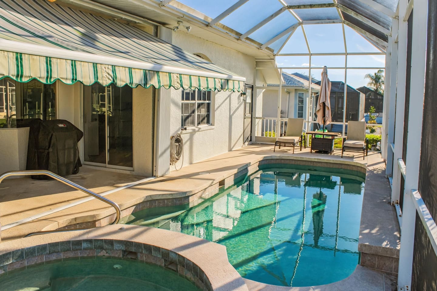 Waterfront 3BR home in Punta Gorda with everything for relaxing and boating. Enjoy the private pool and hot tub, unwind on the lanai, and head out with ease using the boat lift. Bright, comfortable spaces, great outdoor living, and peaceful canal views make this the perfect Florida getaway for families, friends, and boaters. Minutes to dining, shops, and local beaches.